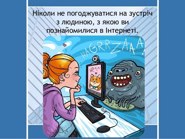 - 2. Ніколи не погоджуватися на зустріч з людиною, з якою ви познайомилися в Інтернеті.