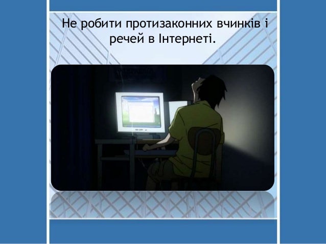 - 7. Не робити протизаконних вчинків і речей в Інтернеті.